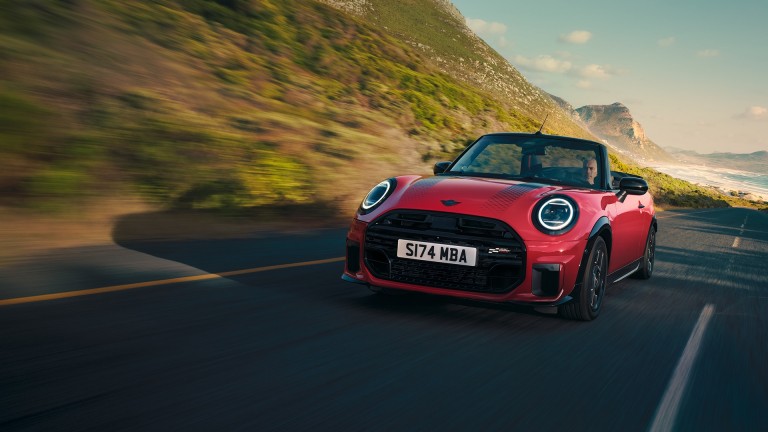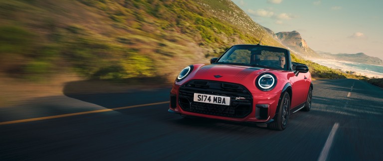 MINI JCW Cabrio: WLTP Energieverbrauch kombiniert: 7,1 l/100 km; WLTP CO2-Emissionen kombiniert: 161 g/km; CO2-Klasse: F. disclaimer