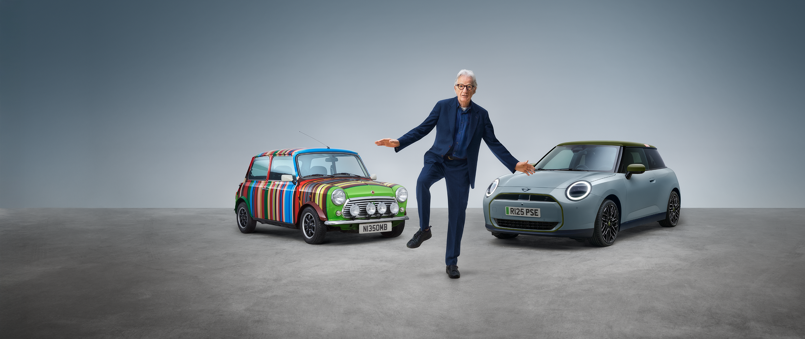 Sir Paul Smith wurde 1946 in Nottingham, England, geboren und ist eine Kultfigur der Mode- und Kreativbranche. Seine Karriere begann als Käufer und Boutique-Manager, bevor er 1970 sein eigenes Geschäft gründete. 1976 folgte seine erste Herrenkollektion. Heute betreibt er mehr als 130 Geschäfte. Ende der 1990er Jahre führten Smiths ikonische Farbstreifen zur ersten Kooperation mit MINI. Privat fährt er in London einen vollelektrischen MINI – die passende Ladestation installierte er gleich neben seinem legendären Studio in der Londoner Innenstadt.