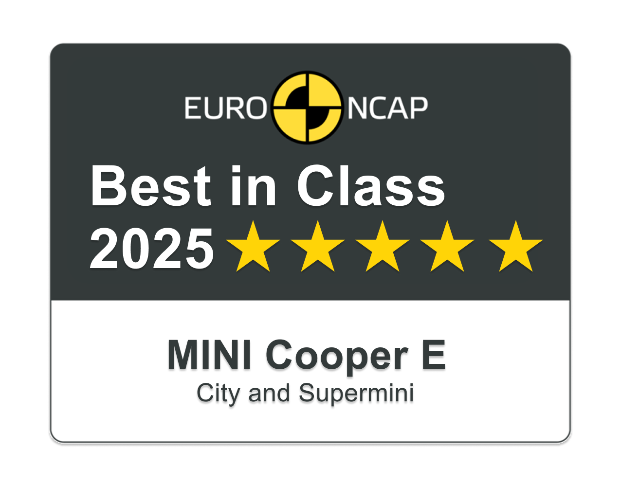 MINI setzt erneut Maßstäbe in Sachen Sicherheit. Der vollelektrische MINI Cooper Electric wird als sicherstes Fahrzeug seiner Klasse ausgezeichnet. Nach der Höchstwertung von fünf Sternen im Euro NCAP Crashtest bestätigt diese Ehrung eindrucksvoll die Spitzenposition des Modells im Segment der Premium‑Kleinwagen.
