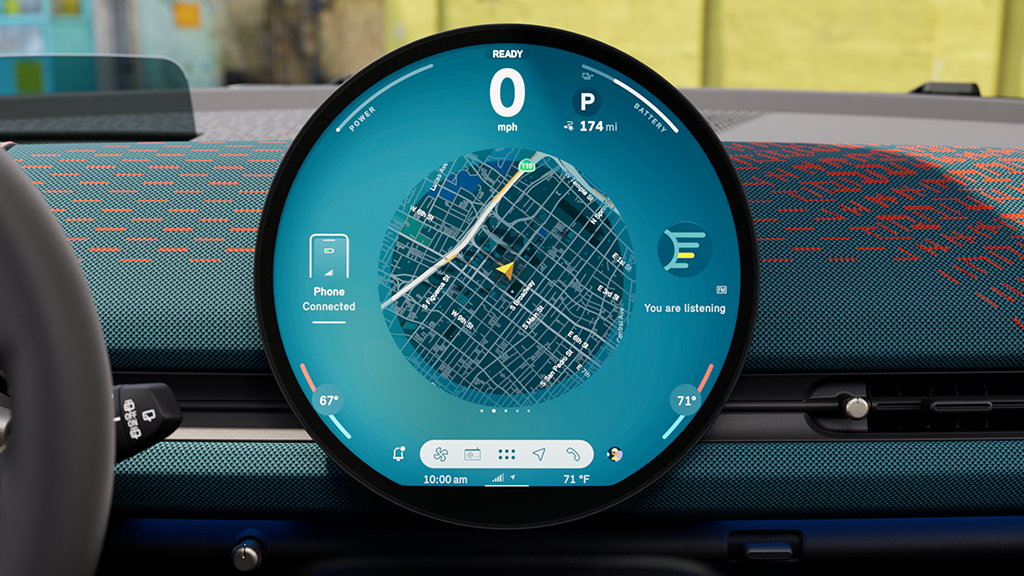 Das mittig angeordnete, markante 240-mm-Display aus hochwertigem Glas dient als Kombiinstrument und steuert gleichzeitig die Infotainment- und Assistenzsysteme. Es ist außerdem das weltweit erste runde Display der Automobilbranche.