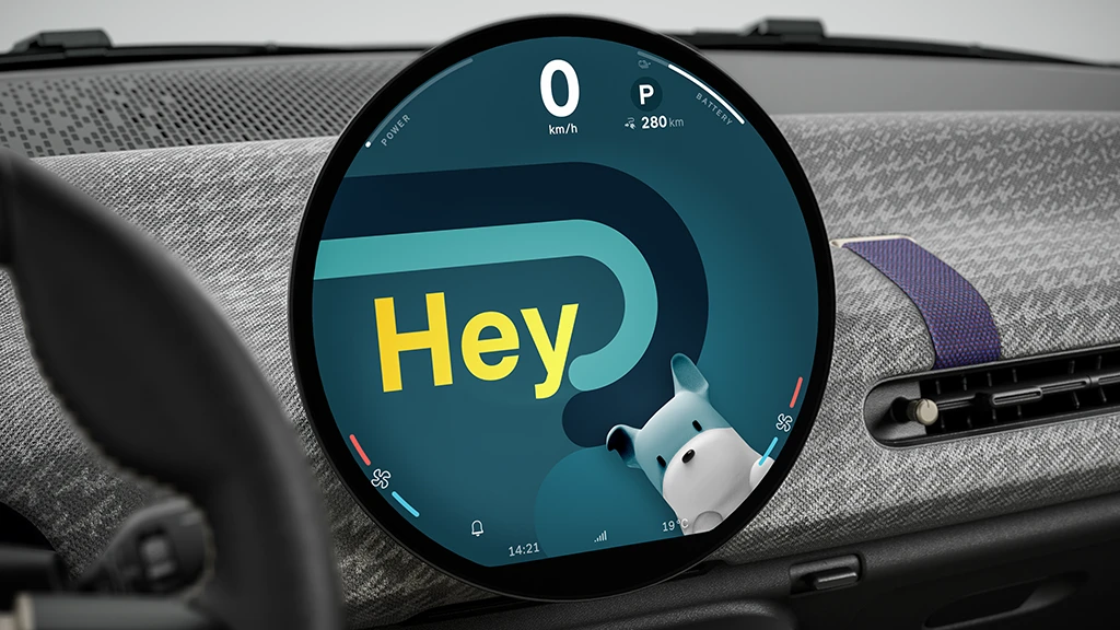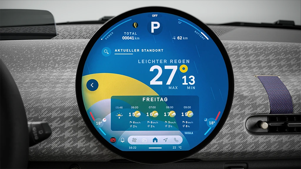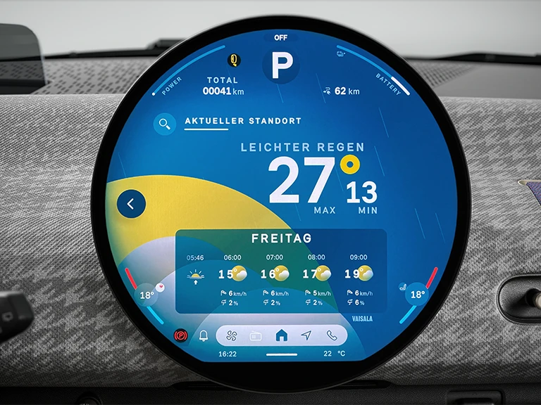 Das mittig angeordnete, markante 240-mm-Display aus hochwertigem Glas dient als Kombiinstrument und steuert gleichzeitig die Infotainment- und Assistenzsysteme. Es ist außerdem das weltweit erste runde Display der Automobilbranche.