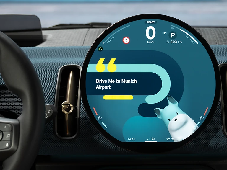 Mit dem serienmäßigen MINI Intelligent Personal Assistant steuern Sie Funktionen wie Navigation, Telefon, Radio, Temperatur und Reiseinformationen ganz einfach per Sprachbedienung. Der Sprachassistent kann mit „Hey MINI“ oder durch Drücken der Sprechtaste am Lenkrad aktiviert werden. Ein besonderes Highlight ist die Auswahlmöglichkeit zwischen zwei Avataren für Ihren Personal Assistant: einer stilisierten Version Ihres MINI oder dem MINI Maskottchen „Spike“, der gegen Aufpreis erhältlich ist.