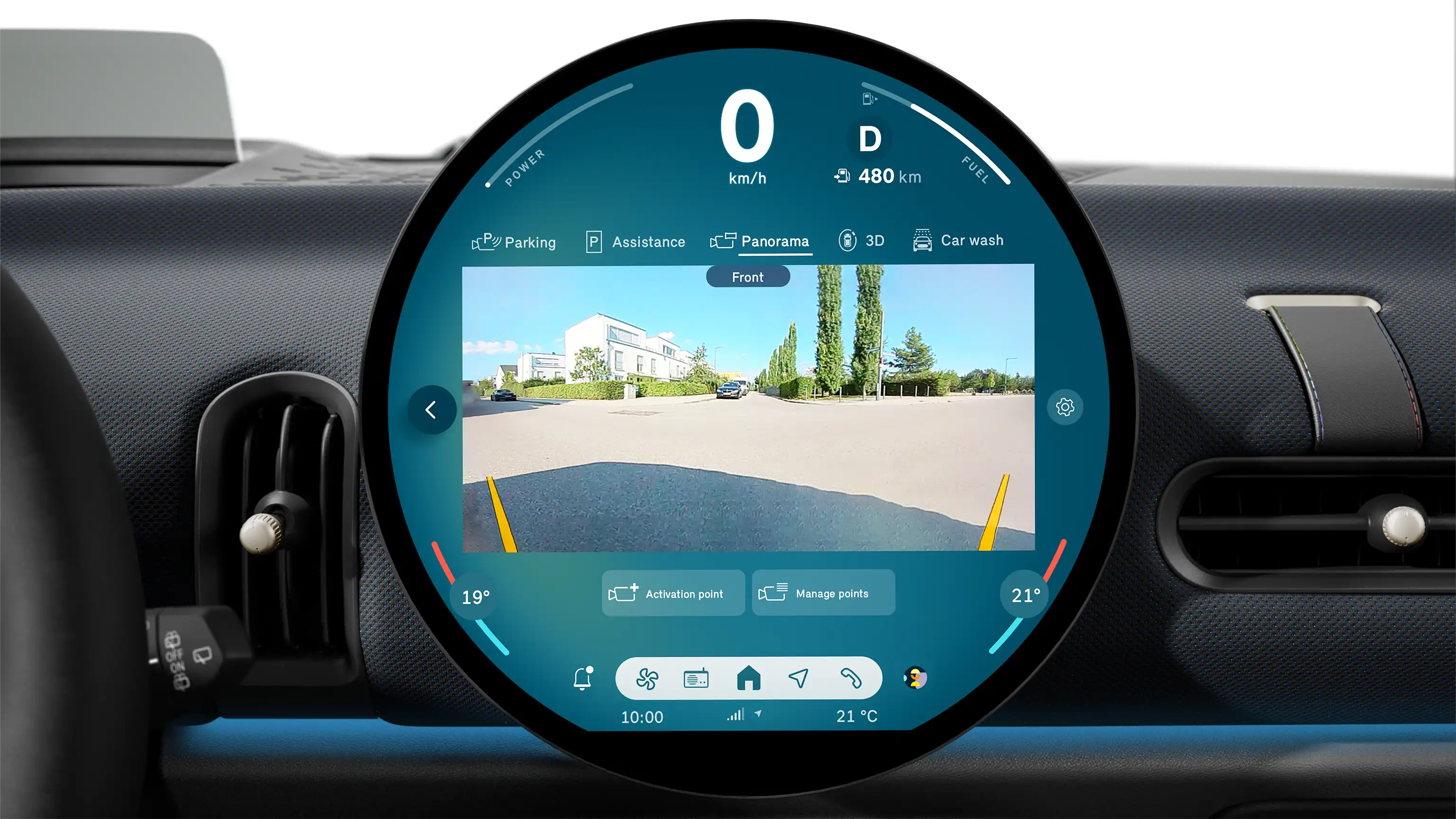 Das mittig angeordnete, markante 240-mm-Display aus hochwertigem Glas dient als Kombiinstrument und steuert gleichzeitig die Infotainment- und Assistenzsysteme. Zudem ist es das weltweit erste runde Display der Automobilbranche.