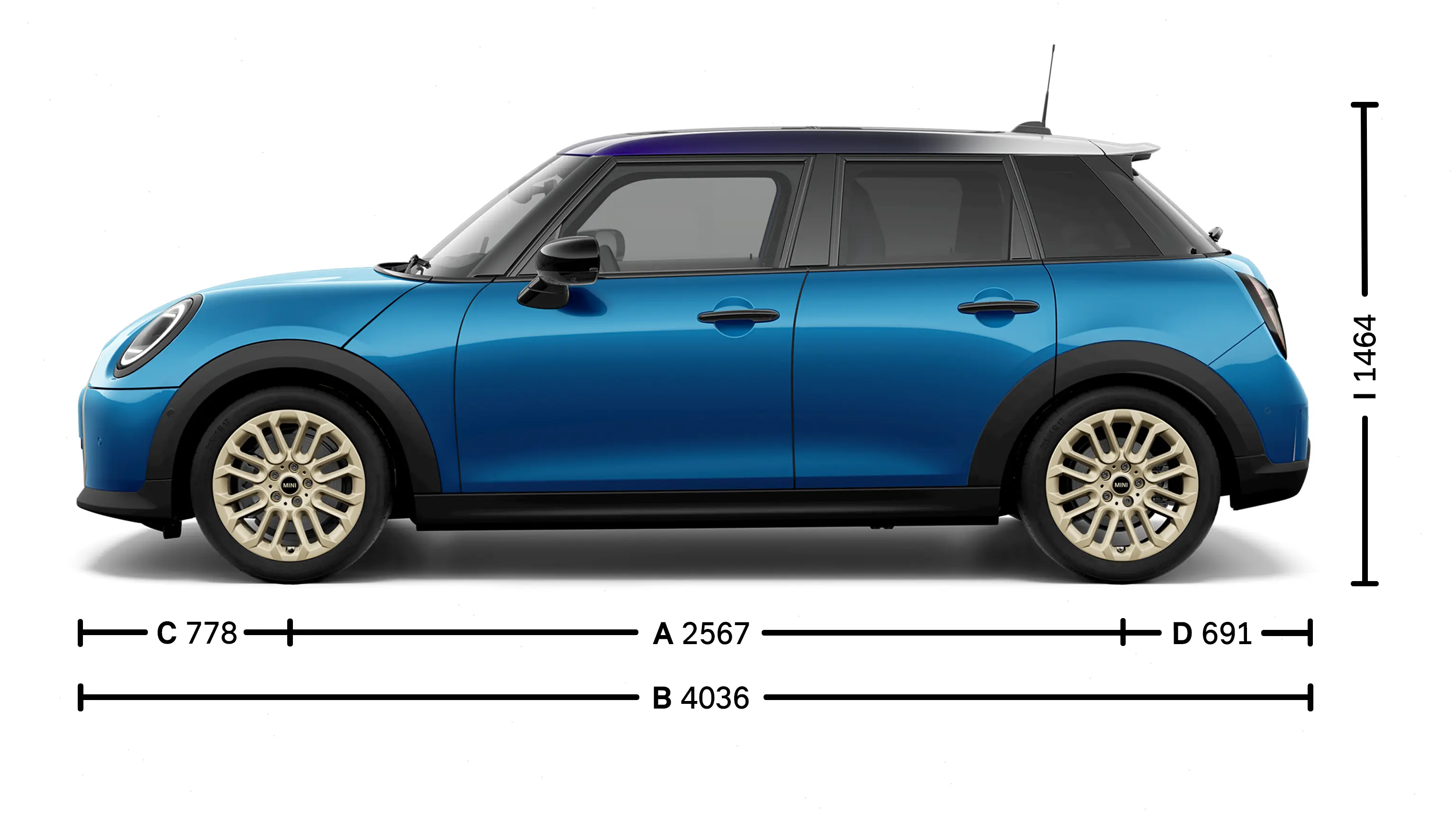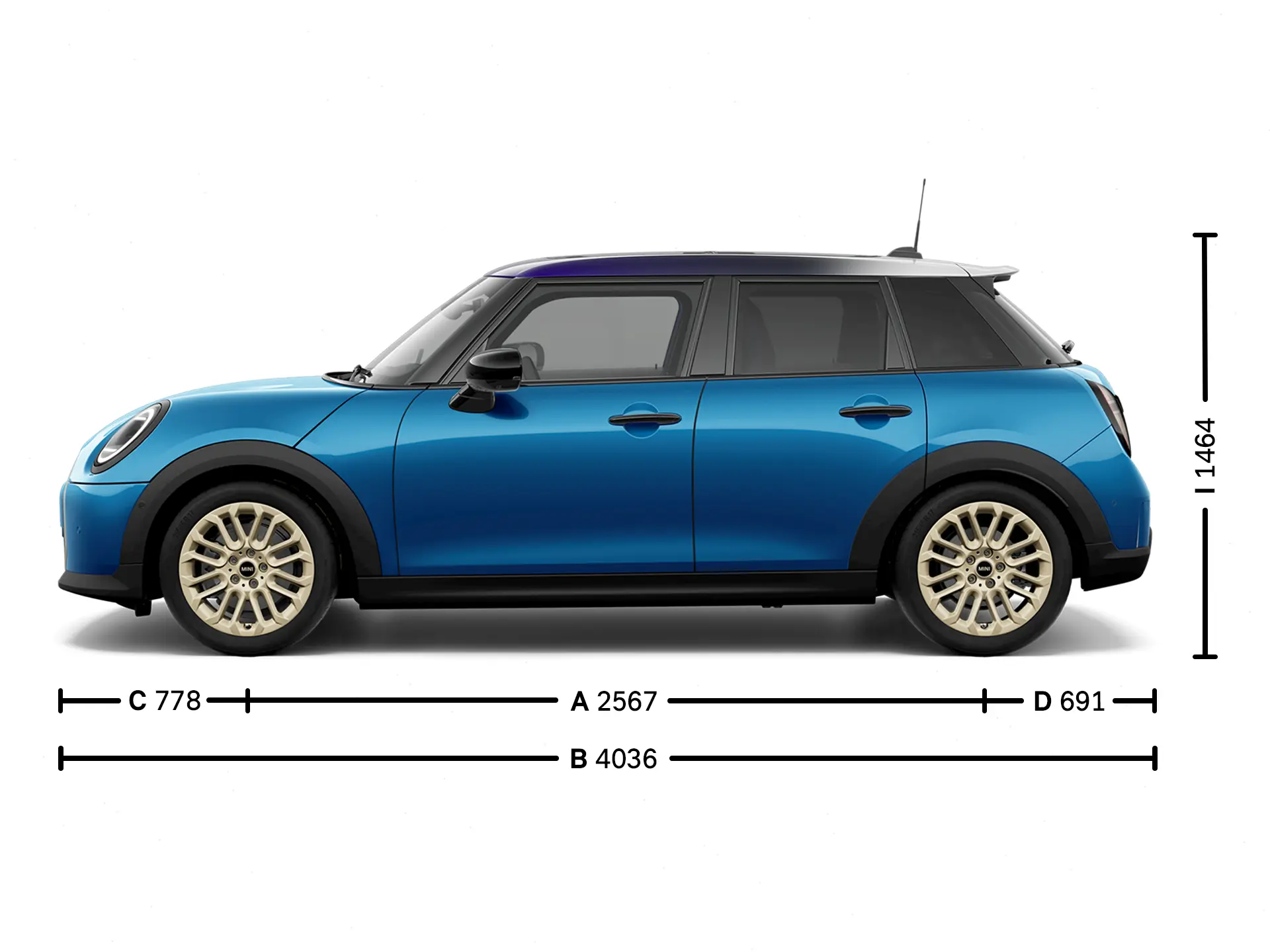 Ein wichtiger Aspekt bei der Kaufentscheidung sind die technischen Daten und Abmessungen des Modells. Hier finden Sie alle Daten und Maße des MINI Cooper 5-Türer.